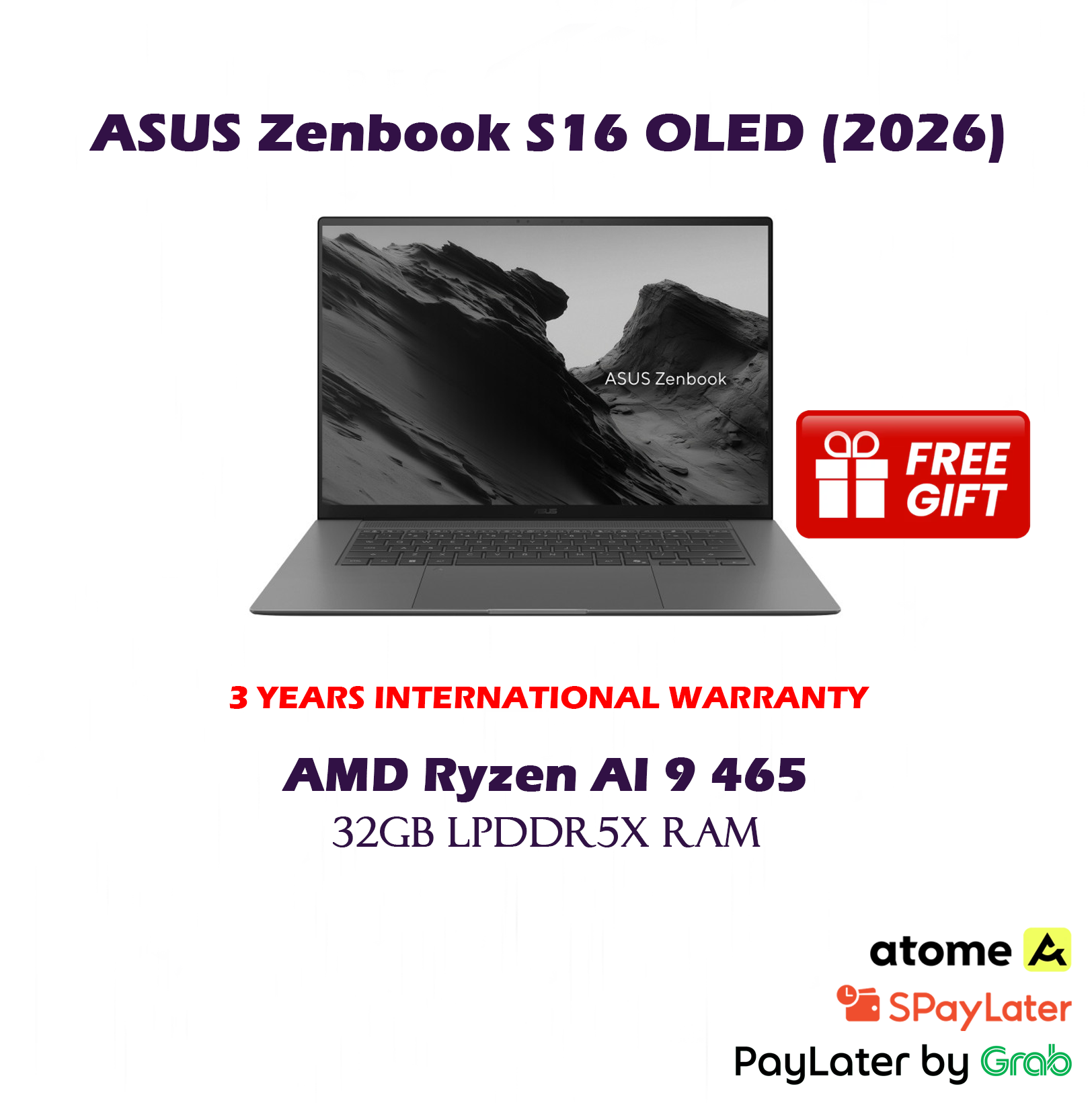 ![[2026] 1TB ASUS Zenbook S16 3K OLED Touch Screen Laptop - 32GB LPDDR5X RAM / AMD Ryzen AI 9 465 - S 16 / Antrim Gray](http://wdivision.sg/cdn/shop/files/7.png?v=1769513343&width=1445)