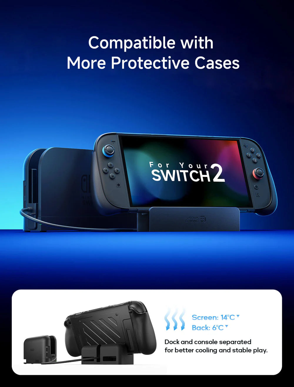 -Our dedicated dock boasts strong stability, employing a silicone design to ensure the dock is firmly supported, preventing tilting or sliding during gameplay. This means you can effortlessly dock and undock your Switch 2 console with just one hand, ditching the need for two-handed struggles.
