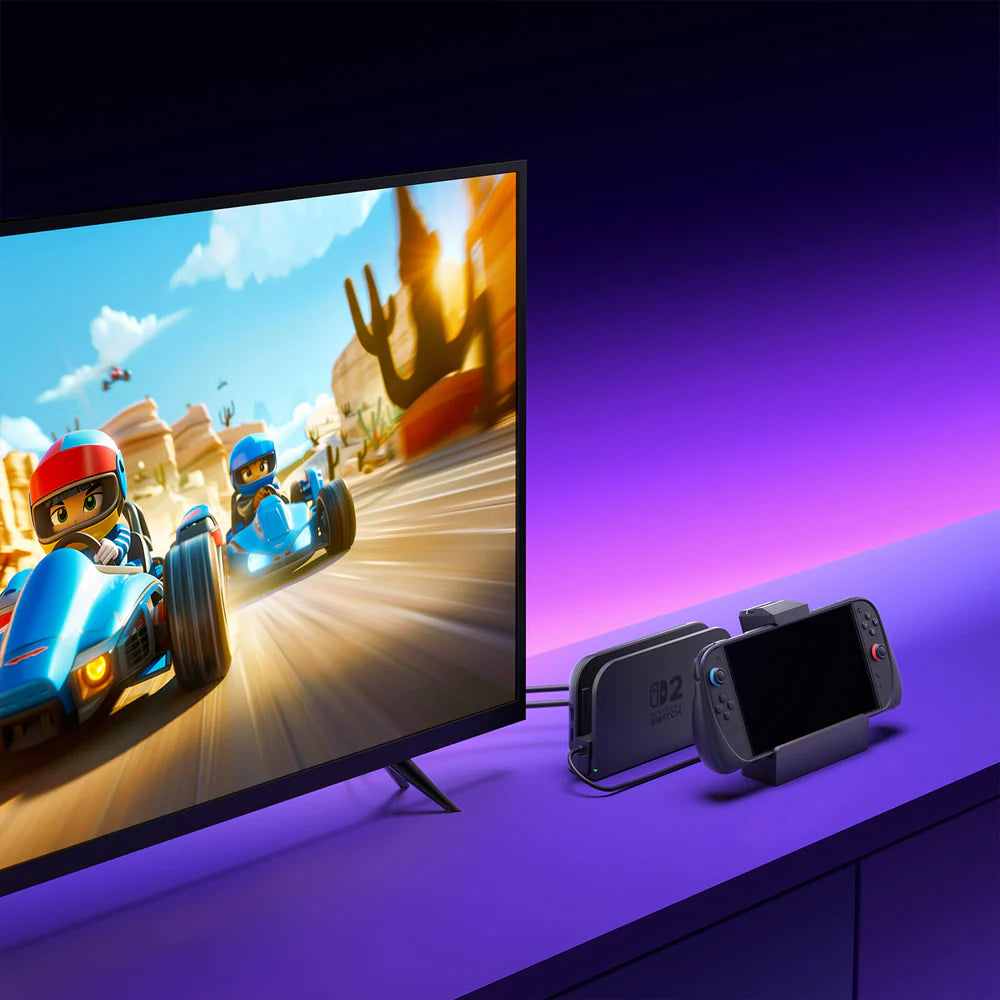 -USB-C female end connects to the Switch 2 dock, enabling full native feature expansion
