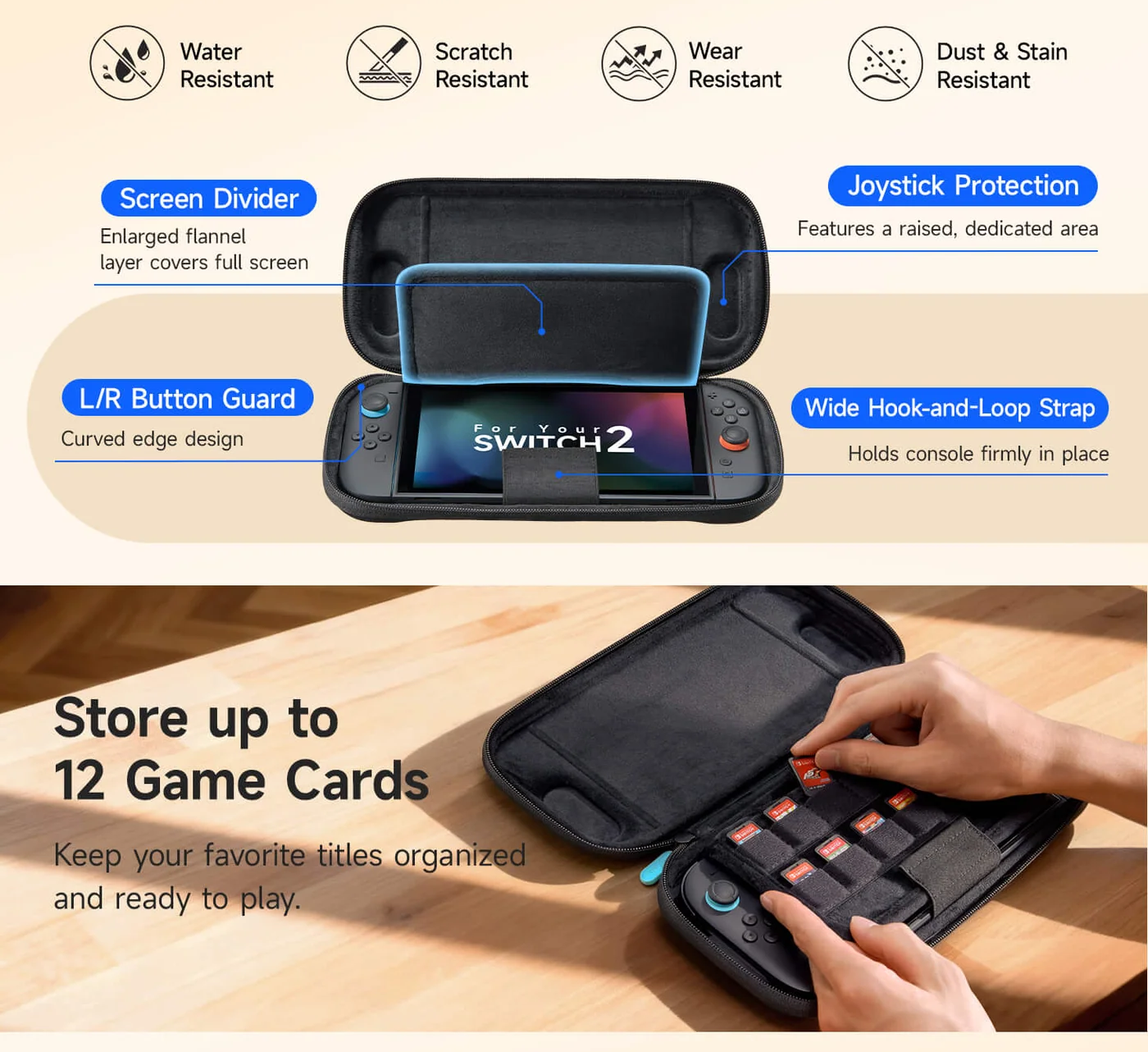 -30% slimmer than typical cases, precisely engineered to fit Switch 2 ā perfect for backpacks, totes, or handheld carry.