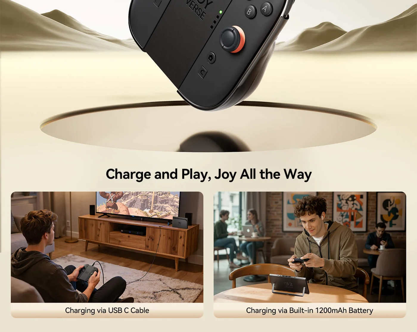 -Powers your Joy-Cons on the go. USB-C charging allows play while charging, ensuring uninterrupted gaming anytime, anywhere