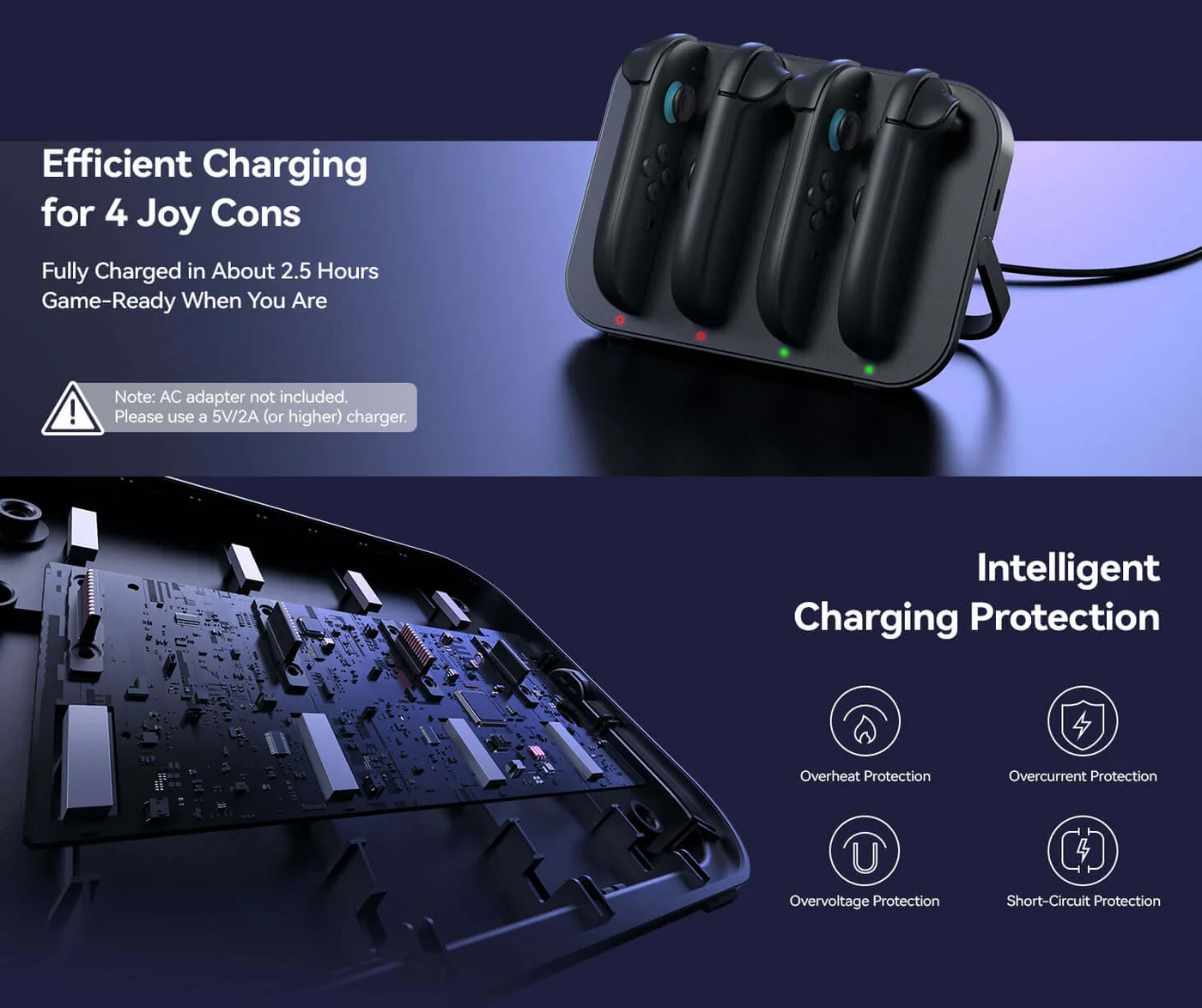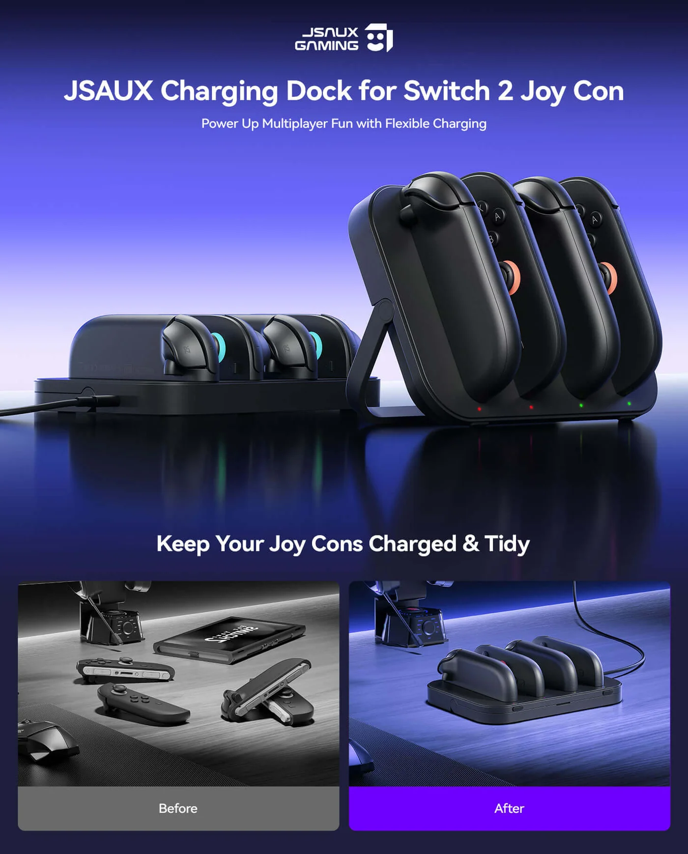 -Perfectly tailored for Nintendo Switch 2, this controller charging dock offers a snug, secure fit—allowing you to power up to 4 Joy-Cons simultaneously. Ideal for families or multiplayer sessions.