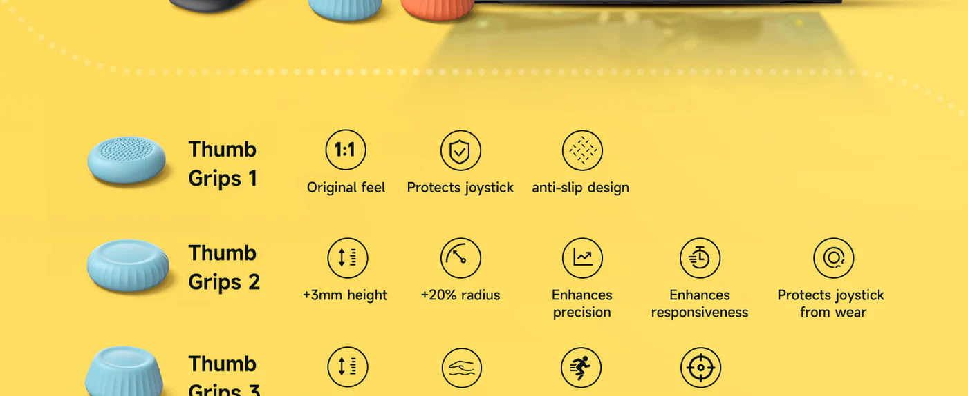 -Includes Size 1, 2, and 3 switch thumb grips to match different hand sizes and grip stylesโfind the ideal fit for your comfort and control in any game